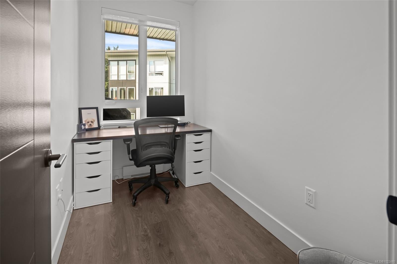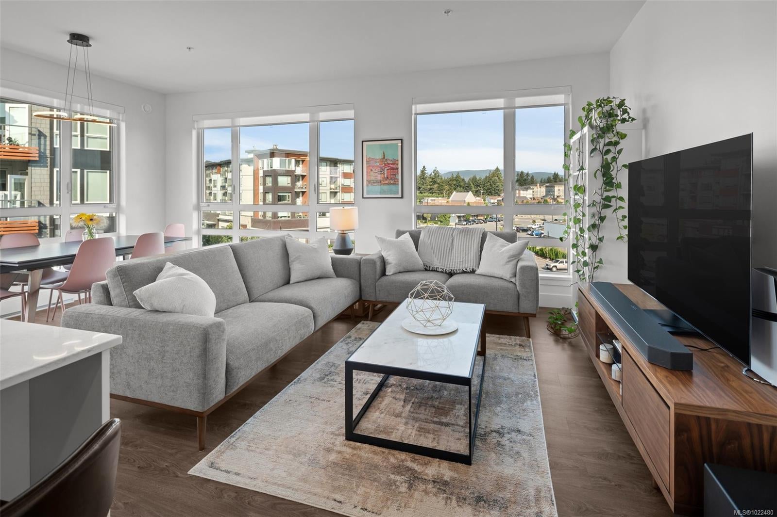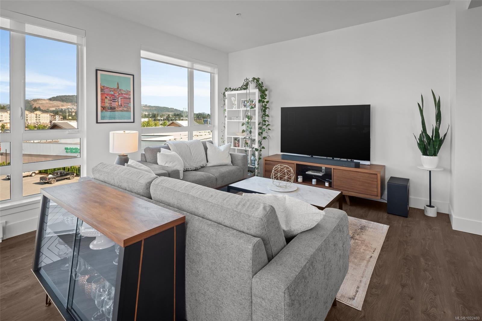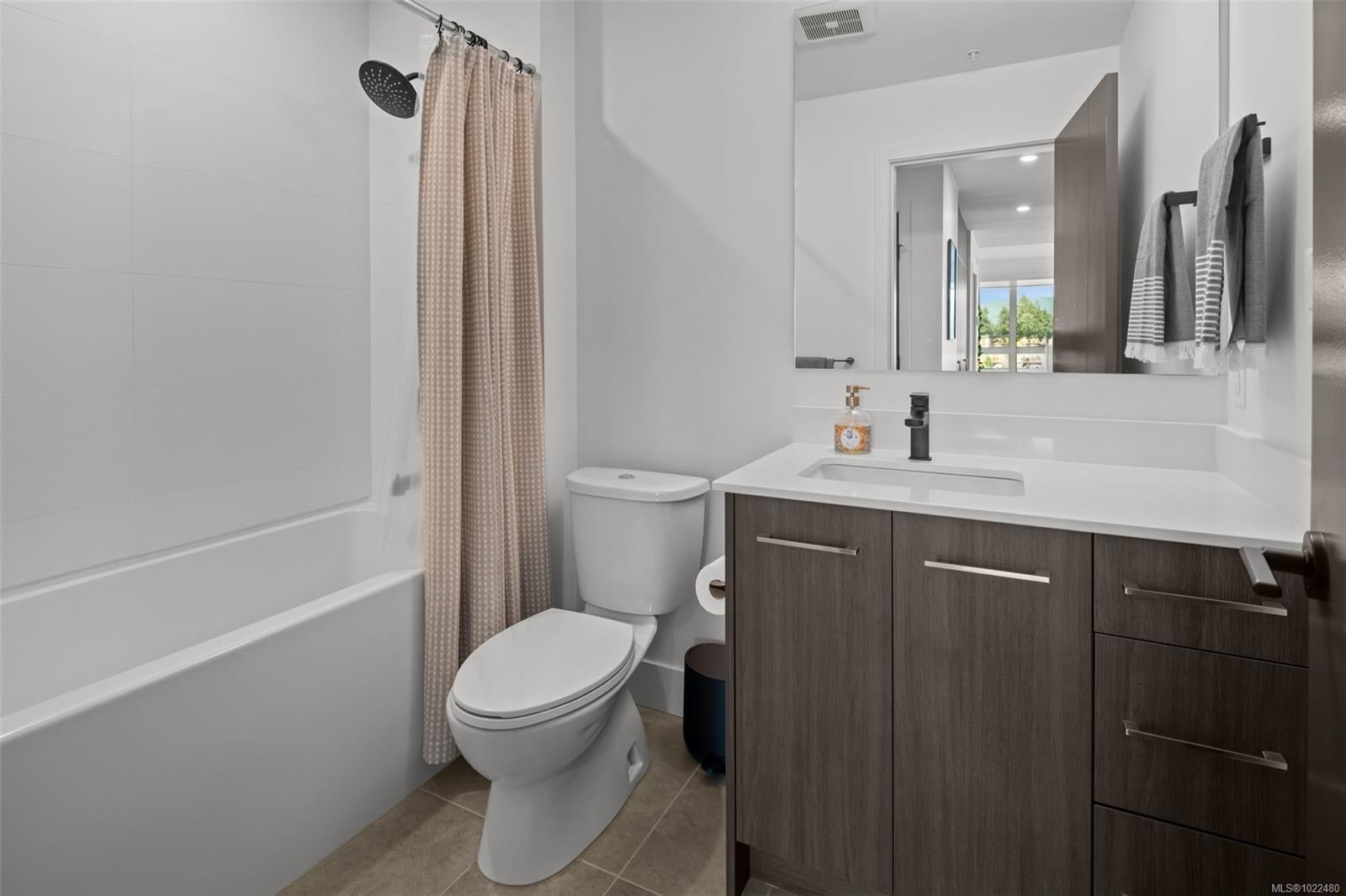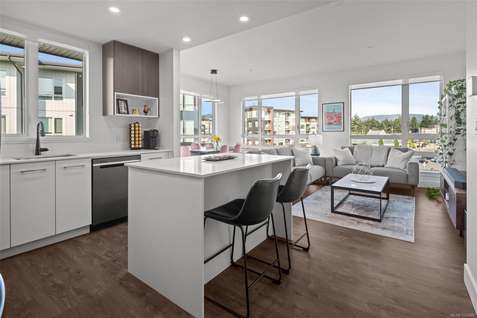 *OH Sat 11:30-1pm.* Large, 2 bed PLUS DEN / 2 bath corner unit with TWO PARKING SPOTS! The ideal layout with one bedroom & bath on either side of a bright, open concept living space. Built in 2024, the unit features premium details: quartz countertops, tiled backsplashes, 9ft ceilings and a full-height sidewall pantry. Modern touches include Energy Star appliances, LED lighting, heat pump/ AC, and open shelving “tech hub” for charging devices. The Reunion has top end common amenities - fitness centre, huge outdoor patio, bike storage, resident lounge, pet wash station and fully fenced dog park. One of the most convenient locations in the Westshore, just steps away from groceries, restaurants and coffee shops in Belmont Commons. Across from Westshore Town Centre Mall for shopping, with Westshore Cineplex and multiple recreation/ entertainment options close by. This checks every box – location, design, home office, extra parking, pet friendly, additional storage, and great amenities.