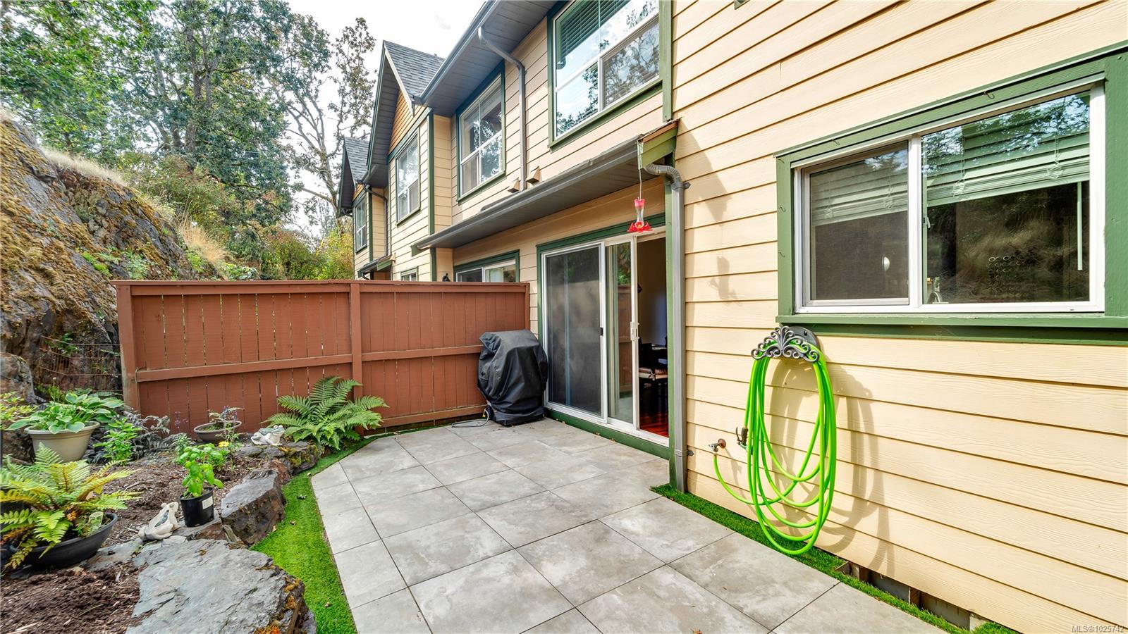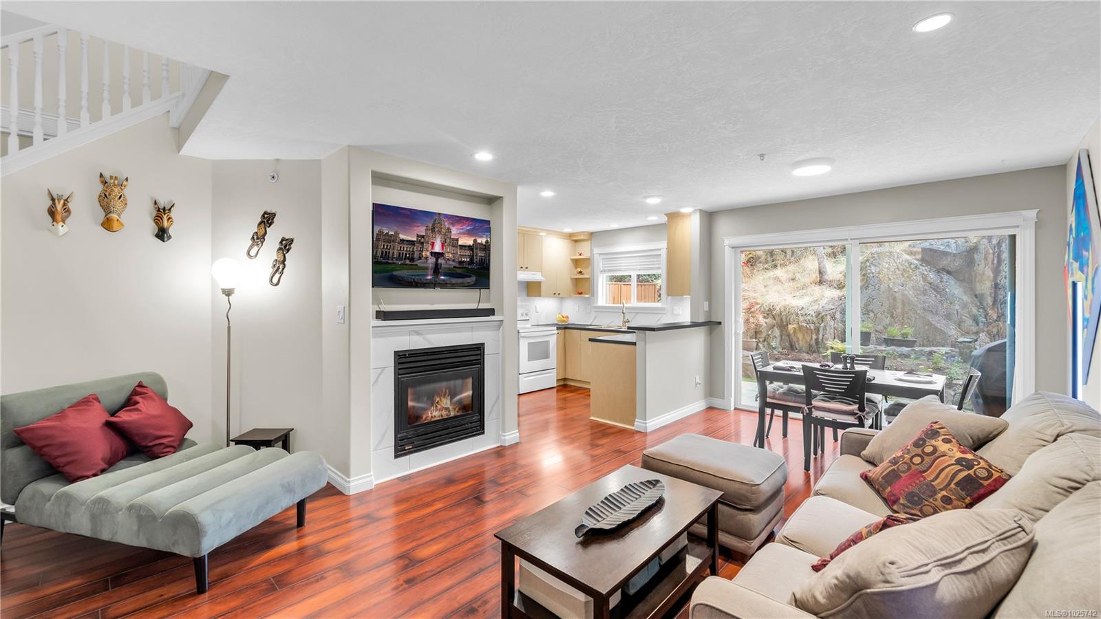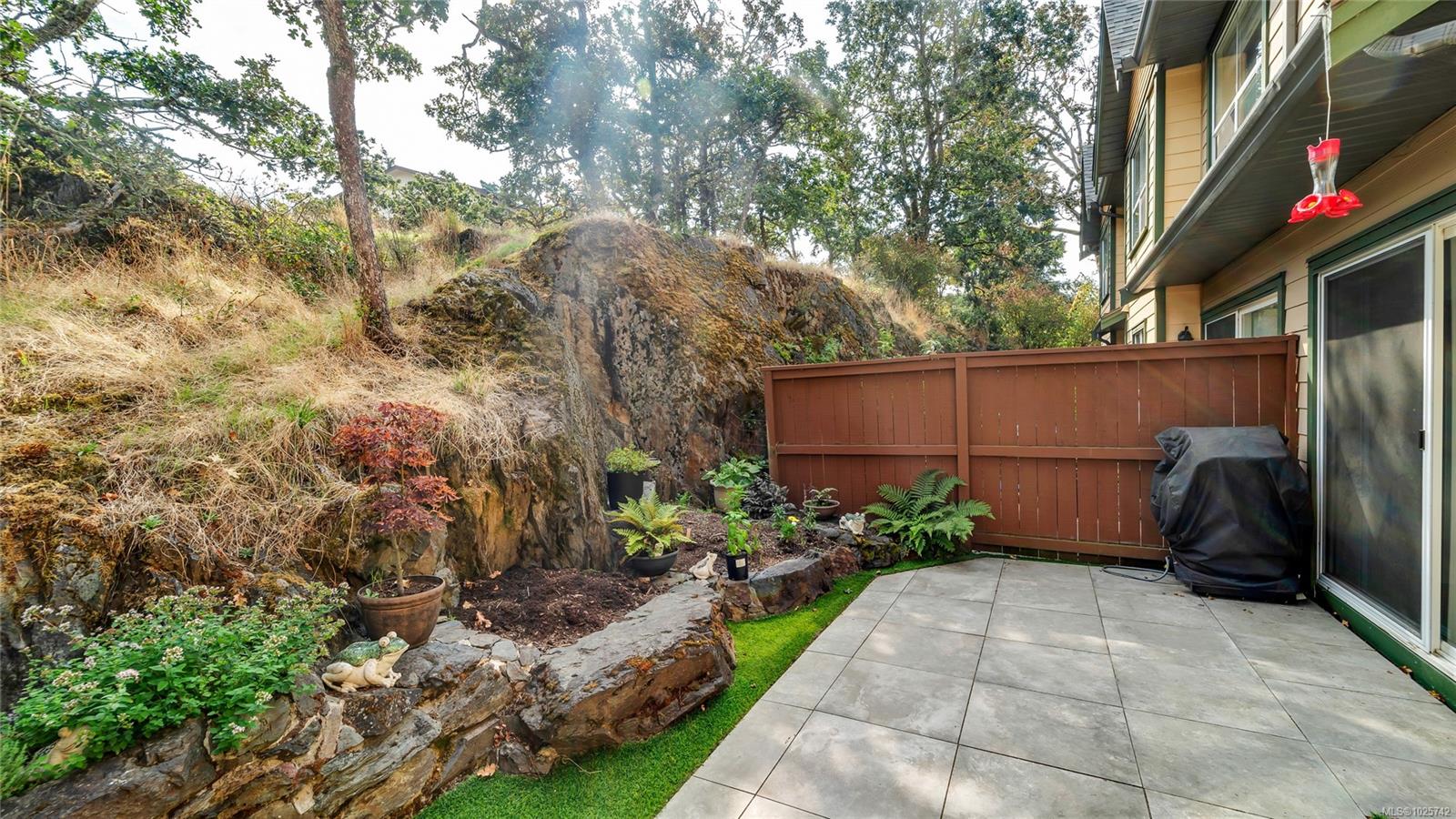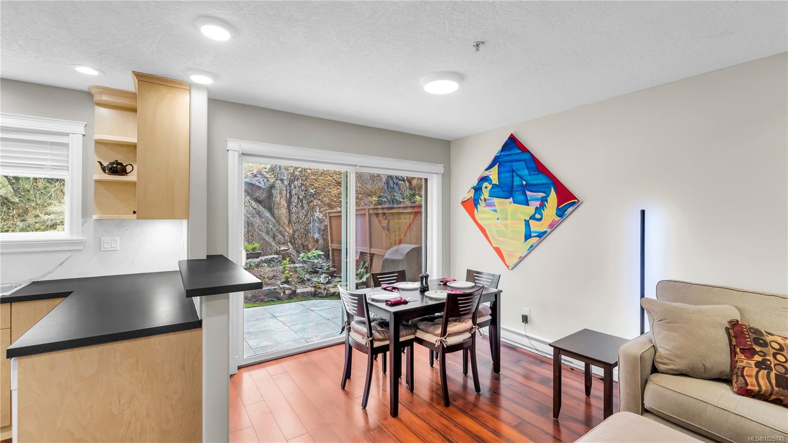 Nestled in a QUIET COMMUNITY, this well maintained two-story townhouse is a perfect blend of comfort & convenience. The main floor features a BRIGHT FUNCTIONAL UPDATED KITCHEN with SOLID WOOD CABINETS & pantry with pull out shelves. LIVING & DINING AREAS are enhanced with POT LIGHTS and INSULATED LAMINATE FLOORS. A slider steps out to a PRIVATE PATIO featuring PORCELAIN PAVERS, HERB GARDENS, rocky outcrops & forest meadows. Retreat upstairs to the PRIMARY SUITE boasting a VAULTED CEILING, WALK-IN CLOSET, and 4PC ENSUITE. Two additional bedrooms up, one with MURPHY BED. 2023 ROOF and 2024 HW TANK. Walk to ESQUIMALT LAGOON and ROYAL ROAD UNIVERSITY. Less than a 10 minute walk to ECOLE JOHN STUBBS, COLWOOD CORNERS, & WESTSHORE PARKS & REC. Minutes from the GALLOPING GOOSE TRAIL. Parking in & in front of SINGLE GARAGE. Unit located well off the road, and an onsite playground make this a great option for active families.