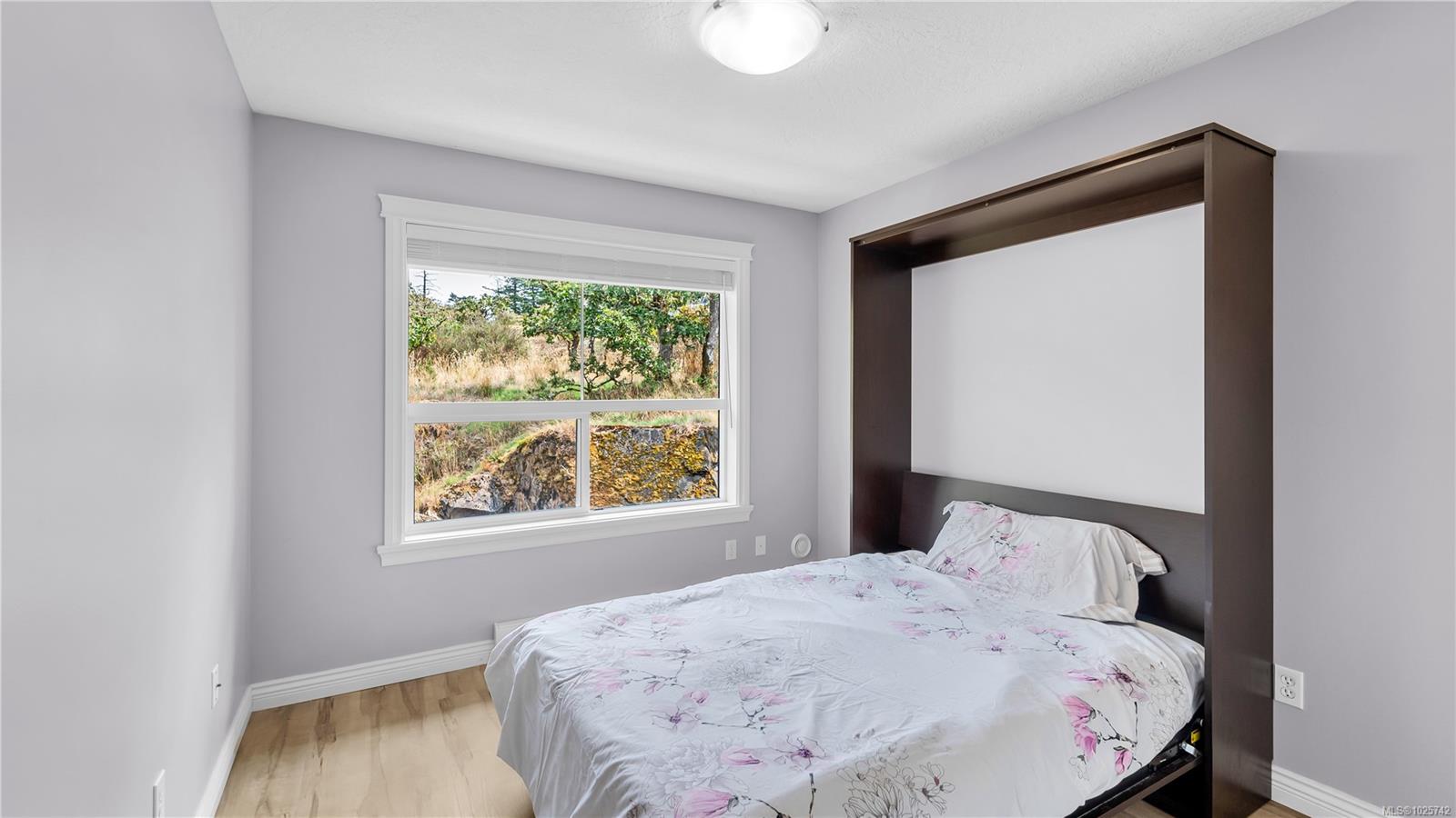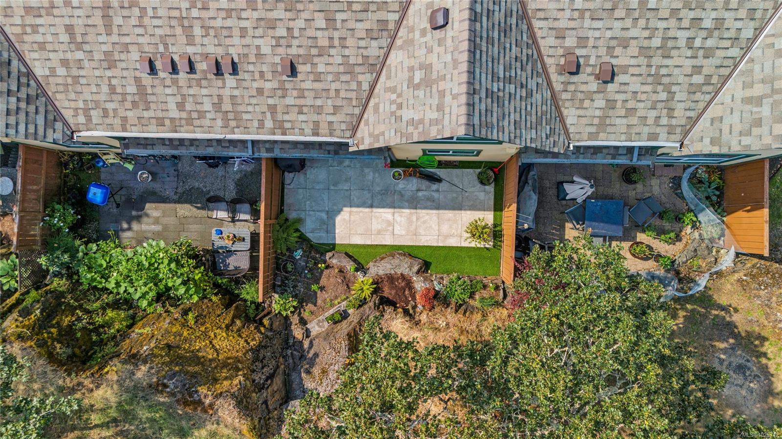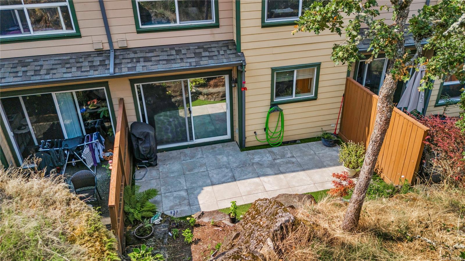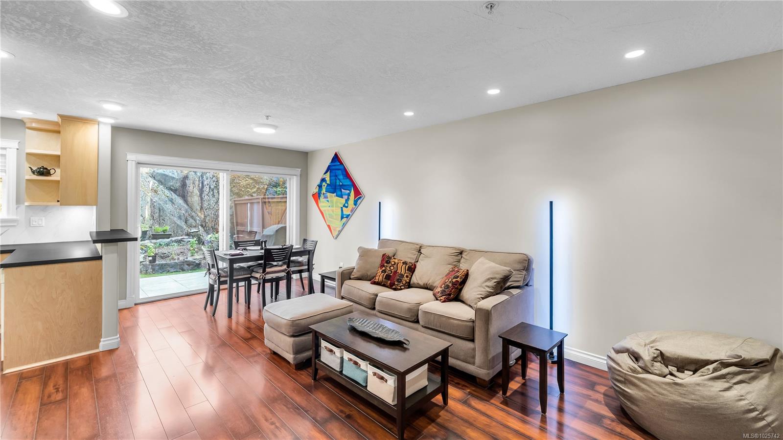 Nestled in a QUIET COMMUNITY, this well maintained two-story townhouse is a perfect blend of comfort & convenience. The main floor features a BRIGHT FUNCTIONAL UPDATED KITCHEN with SOLID WOOD CABINETS & pantry with pull out shelves. LIVING & DINING AREAS are enhanced with POT LIGHTS and INSULATED LAMINATE FLOORS. A slider steps out to a PRIVATE PATIO featuring PORCELAIN PAVERS, HERB GARDENS, rocky outcrops & forest meadows. Retreat upstairs to the PRIMARY SUITE boasting a VAULTED CEILING, WALK-IN CLOSET, and 4PC ENSUITE. Two additional bedrooms up, one with MURPHY BED. 2023 ROOF and 2024 HW TANK. Walk to ESQUIMALT LAGOON and ROYAL ROAD UNIVERSITY. Less than a 10 minute walk to ECOLE JOHN STUBBS, COLWOOD CORNERS, & WESTSHORE PARKS & REC. Minutes from the GALLOPING GOOSE TRAIL. Parking in & in front of SINGLE GARAGE. Unit located well off the road, and an onsite playground make this a great option for active families.