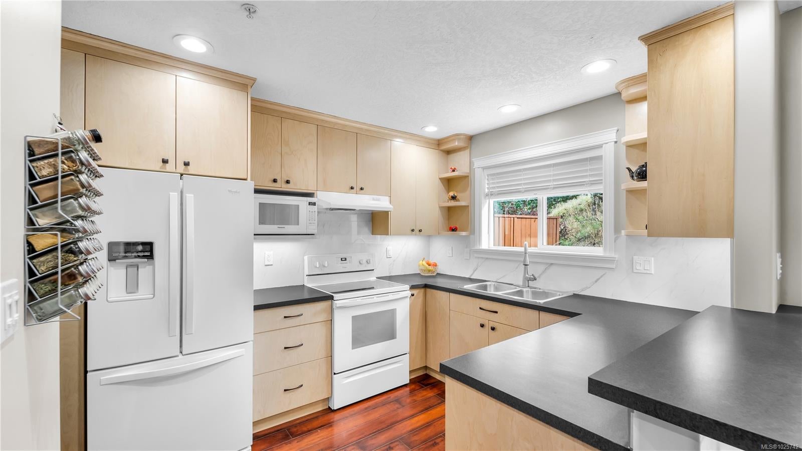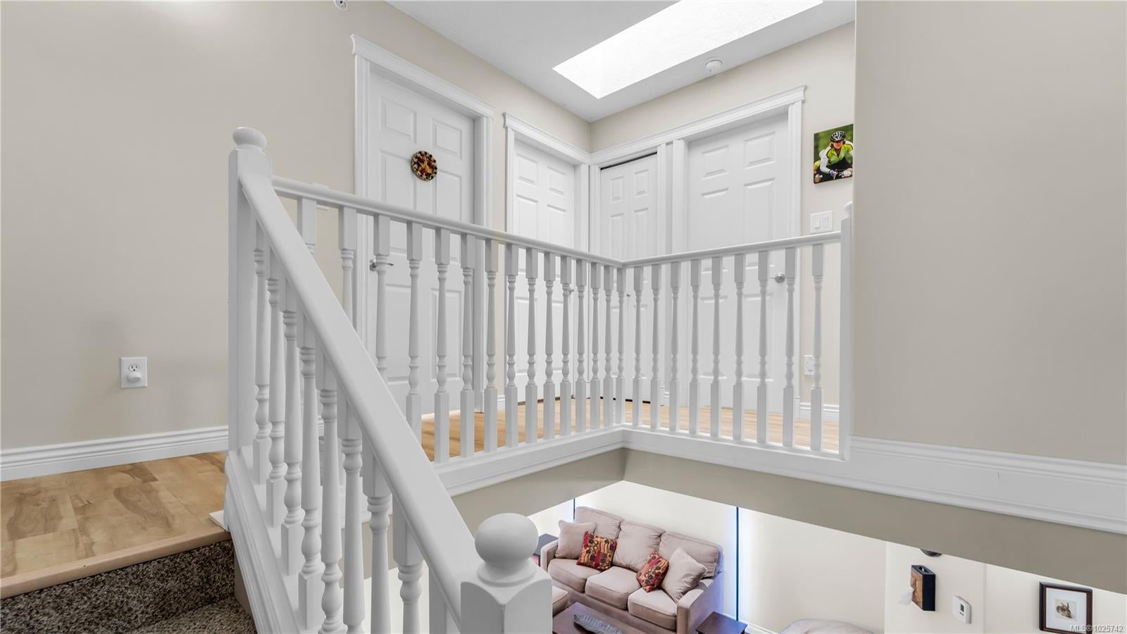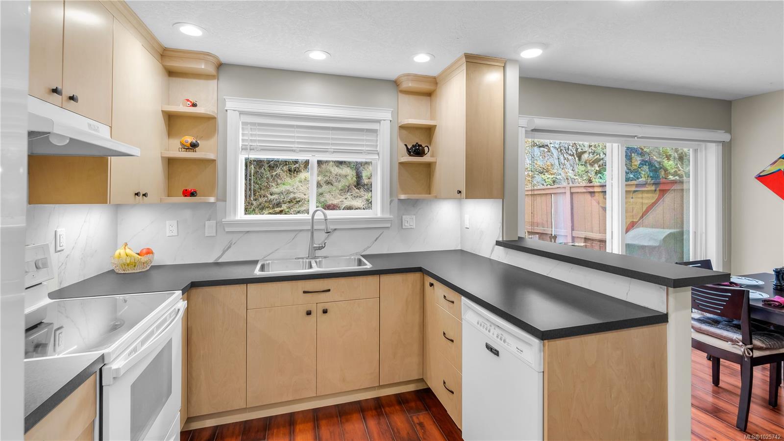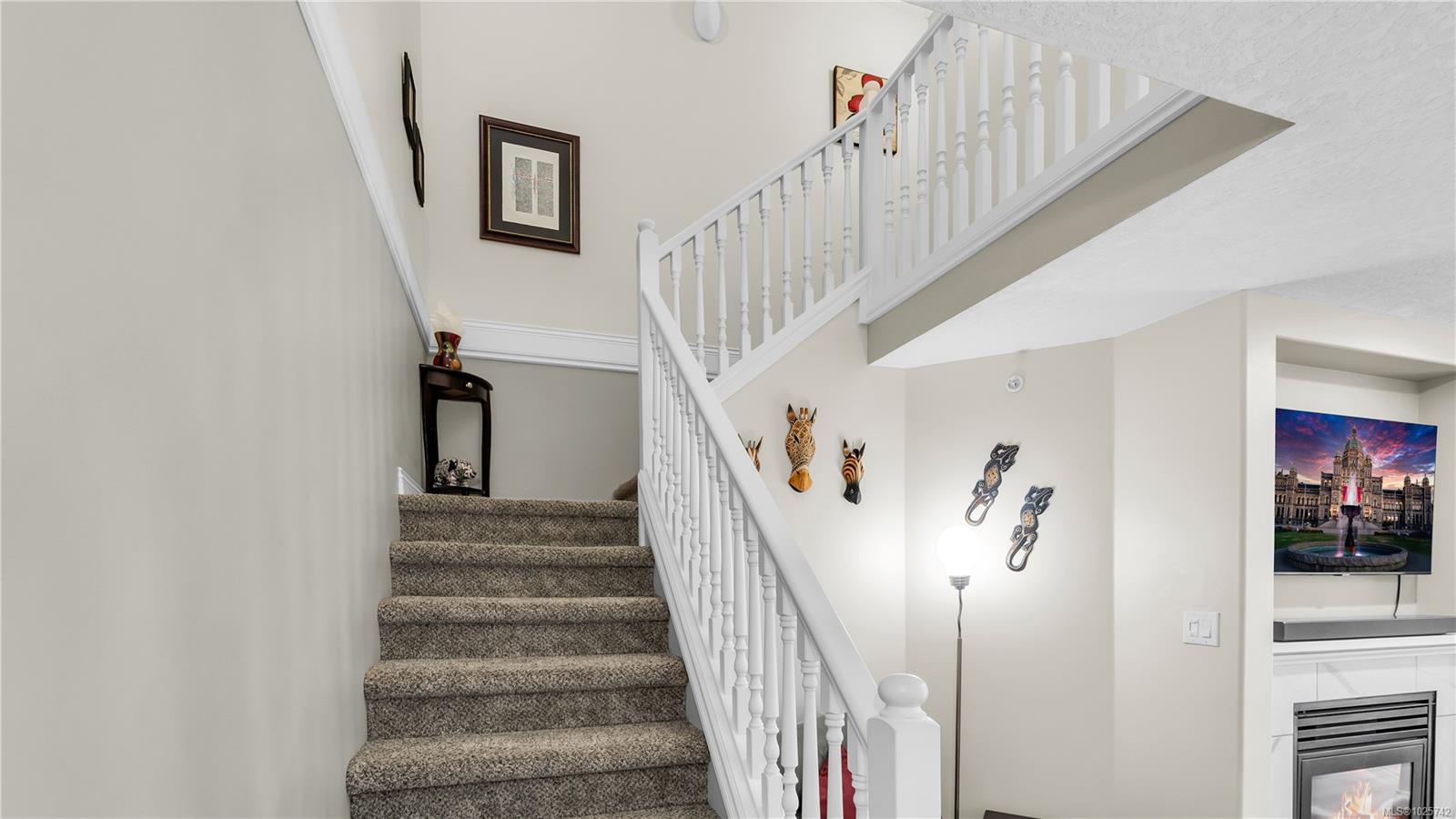 Nestled in a QUIET COMMUNITY, this well maintained two-story townhouse is a perfect blend of comfort & convenience. The main floor features a BRIGHT FUNCTIONAL UPDATED KITCHEN with SOLID WOOD CABINETS & pantry with pull out shelves. LIVING & DINING AREAS are enhanced with POT LIGHTS and INSULATED LAMINATE FLOORS. A slider steps out to a PRIVATE PATIO featuring PORCELAIN PAVERS, HERB GARDENS, rocky outcrops & forest meadows. Retreat upstairs to the PRIMARY SUITE boasting a VAULTED CEILING, WALK-IN CLOSET, and 4PC ENSUITE. Two additional bedrooms up, one with MURPHY BED. 2023 ROOF and 2024 HW TANK. Walk to ESQUIMALT LAGOON and ROYAL ROAD UNIVERSITY. Less than a 10 minute walk to ECOLE JOHN STUBBS, COLWOOD CORNERS, & WESTSHORE PARKS & REC. Minutes from the GALLOPING GOOSE TRAIL. Parking in & in front of SINGLE GARAGE. Unit located well off the road, and an onsite playground make this a great option for active families.